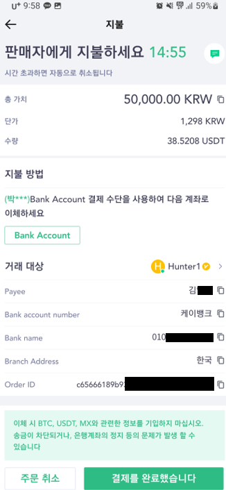 휴대폰 번호를 변경하면 24시간 동안 모든 "출금"이 금지됩니다