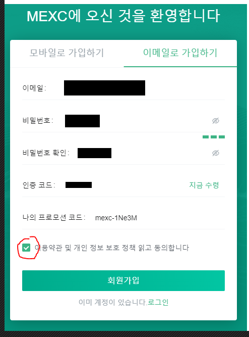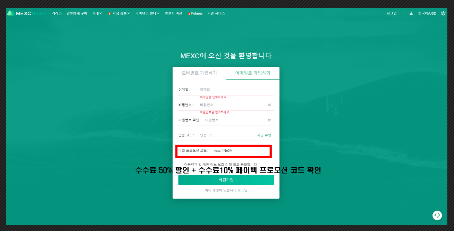 유사 사이트나 피싱사이트 접속을 유의 하시고 아래 링크를 통해 공식파트너 가입 페이지 접속 후 https://www.mexc.com/register?inviteCode=mexc-1Ne3M